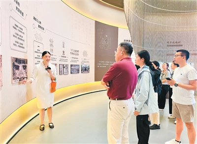 图为台湾自媒体人在四川资阳安岳石窟数字展示中心参观。
